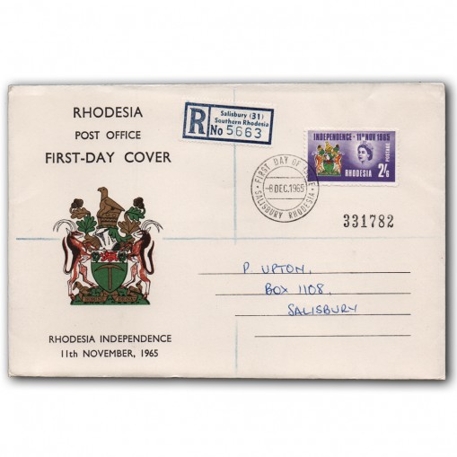 Koperta została zaadresowana z i do Salisbury w Rodezji i wysłana jako przesyłka polecona.