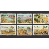 Na znaczkach widnieją reprodukcje obrazów z rodezyjskimi pejzażami, kolejno (nazwisko artysty w nawiasie):