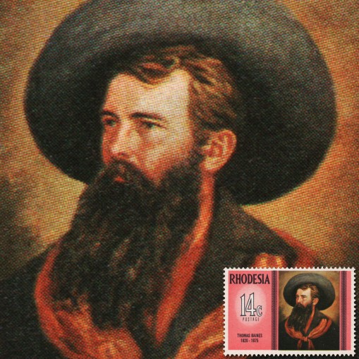 Dziewiąty z kolei znaczek upamiętniający jedną ze słynnych rodezyjskich osobistości, w tym przypadku artystę malarza Thomasa Baines’a (1820-1875). Jest on dziś znany głównie z pełnych szczegółów obrazów i szkiców ilustrujących życie kolonialne w południowej Afryce i Australii.