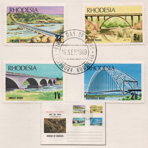 Seria na ilustrowanej kopercie pierwszego dnia obiegu. Na znaczkach przedstawiono mosty wybudowane w Rodezji w latach 1926-1961, między innymi mosty na rzekach Mpudzi i Umniati oraz most Birchenough.