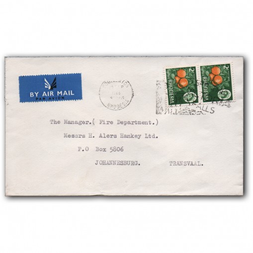 List zaadresowany jest z Southerton w Rodezji do Johannesburga w Republice Południowej Afryki. Posiada on również okolicznościowy kasownik z Vistoria Falls (Wodospady Wiktorii).