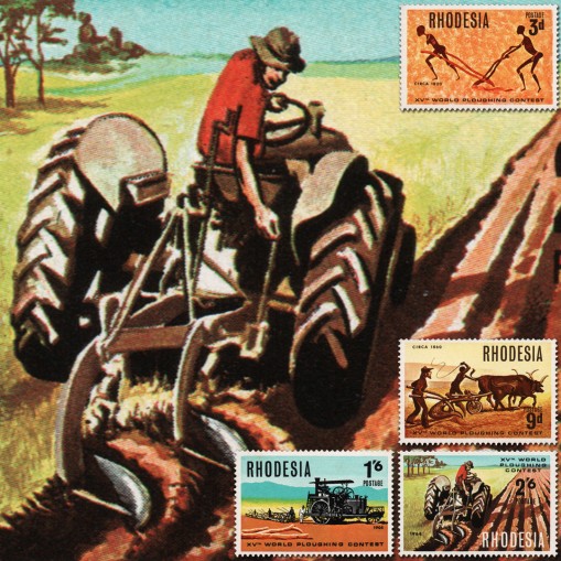 Na znaczkach przedstawiono historię pługu, kolejno: ręczny pług drewniany, pług ciągnięty przez woły, pług ciągnięty przez traktor parowy, współczesny pług ciągnięty przez traktor spalinowy.