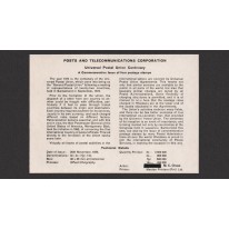 W kopercie umieszczono ulotkę w języku angielskim opisującą działalność Światowego Związku Pocztowego i zawierającą dane filatelistyczne dotyczące tej emisji znaczków.