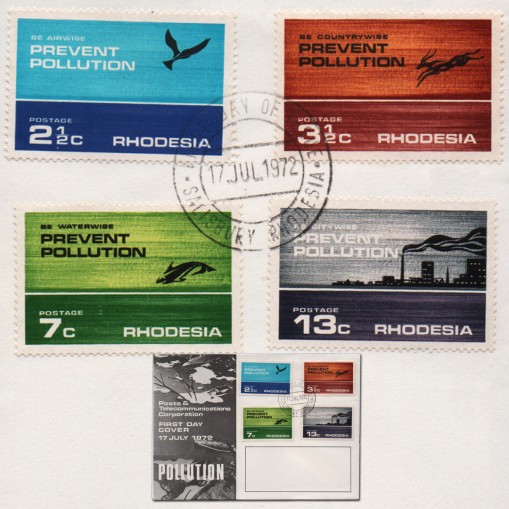 W kopercie umieszczono ulotkę w języku angielskim opisującą problem zanieczyszczenia środowiska i zawierającą dane filatelistyczne dotyczące tej emisji znaczków.