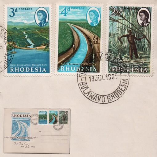 Na znaczkach widnieją kolejno: zapora Bangala, kanał irygacyjny i zbiór trzciny cukrowej.