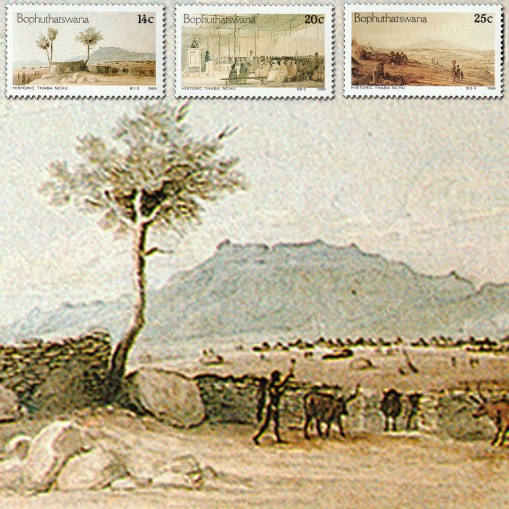 Na znaczkach widnieją reprodukcje następujących obrazów przedstawiających okolice założonego w 1873 roku miasteczka Tchaba 'Nchu (pierwsi osiedleńcy przybyli tam w 1830 roku):