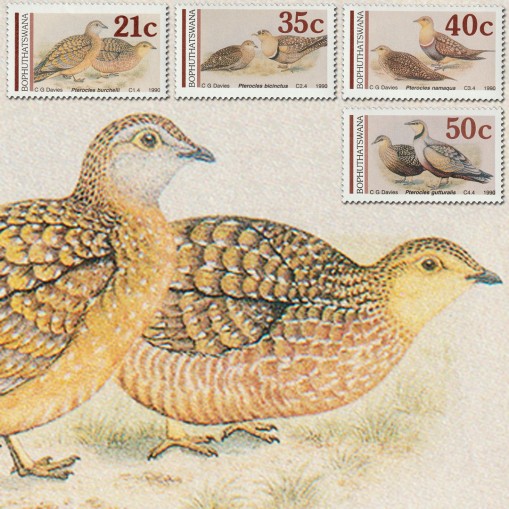 Na znaczkach widnieją następujące gatunki ptaków z rodziny stepówek występujące na terenie byłego bantustanu Bophuthatswany: