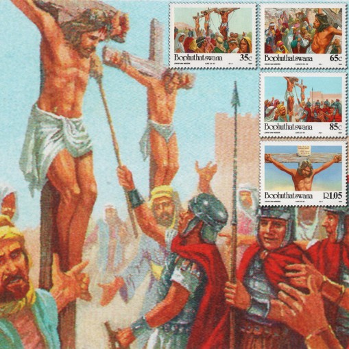Na znaczkach widnieją sceny biblijne, kolejno: