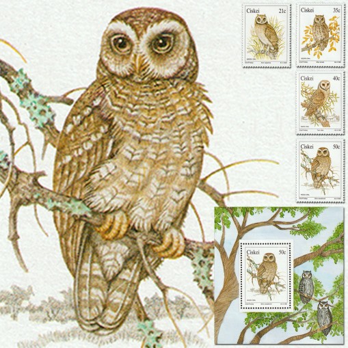 Na znaczkach widnieją następujące gatunki sów występujące w Afryce południowej: