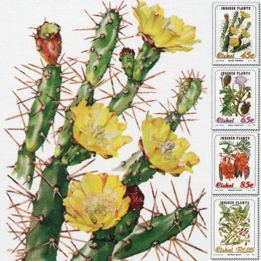 Na znaczkach widnieją następujące gatunki roślin będące gatunkami inwazyjnymi, czyli stanowiącymi zagrożenie dla fauny i flory autochtonicznej danego ekosystemu: