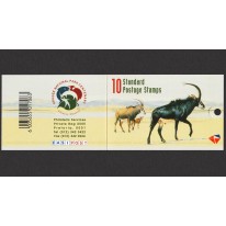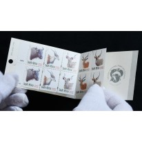 Znaczki w zeszyciku filatelistycznym, na których widnieją następujące gatunki antylop zagrożone wyginięciem: