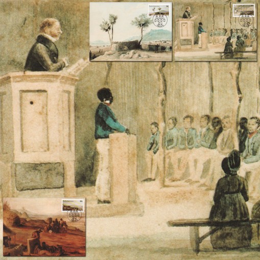 Seria na kartach maksimum, na znaczkach której widnieją reprodukcje następujących obrazów przedstawiających okolice założonego w 1873 roku miasteczka Tchaba 'Nchu (pierwsi osiedleńcy przybyli tam w 1830 roku):