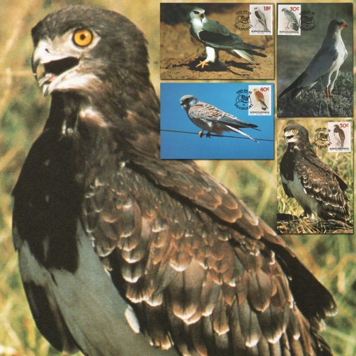 Seria na kartach maksimum, na znaczkach której widnieją następujące gatunki ptaków drapieżnych występujące na terenie byłego bantustanu Bophuthatswany: