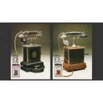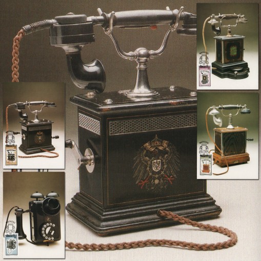 Seria na kartach maksimum, na znaczkach której widnieją stare telefony z lat 1900-1930.