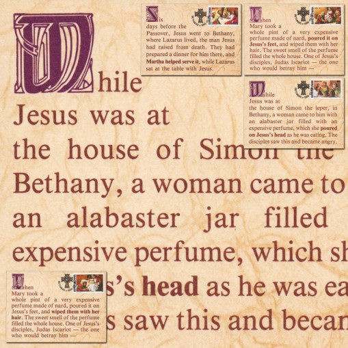 Seria na kartach maksimum, na znaczkach której widnieją sceny biblijne oraz numer wersetu z Ewangelii według św. Mateusza lub św. Marka, który dana scena przedstawia. Na kartach umieszczono cytaty z Biblii.