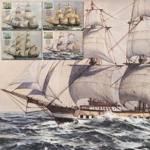 Seria na kartach maksimum, na znaczkach której widnieją żaglowce służące do transportu sił zbrojnych, kolejno: „Antelope”, „Pilot”, „Salisbury” i „Olive Branch”.