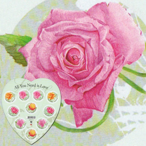 Samoprzylepne znaczki w arkuszu w kształcie serca wydana pod hasłem „all you need is love” (pol. „wszystko, czego potrzebujesz to miłość”).
