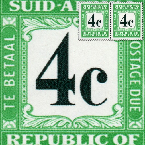 Numeryczny znaczek dopłaty w parce wydany w 1969 roku. Jest to odmiana tego waloru ze znakiem wodnym w postaci trójkątów z napisem RSA położonych wszystkie tym samym kierunku i z ząbkowaniem K 15:14.