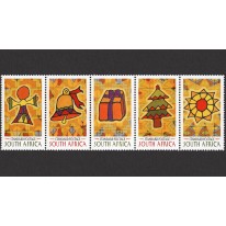 Na znaczkach widnieją kolejno: anioł, dzwonek, prezent, choinka i gwiazda.