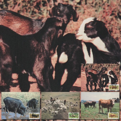 Seria na kartach maksimum, na znaczkach której widnieją zwierzęta hodowlane: świnie, kozy, owce i krowy.