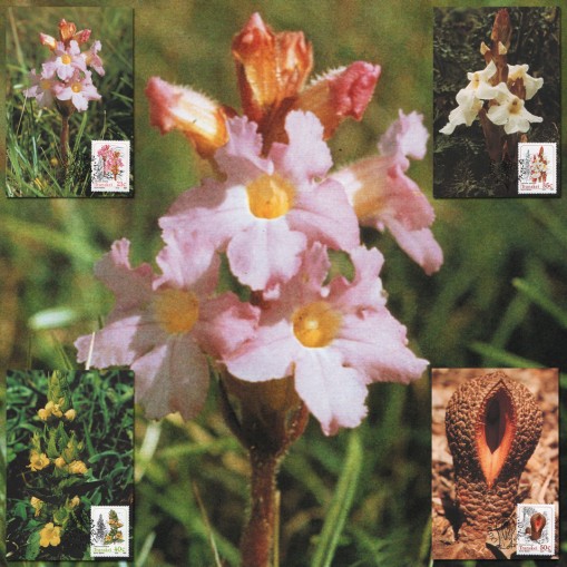 Seria na kartach maksimum, na znaczkach której widnieją następujące gatunki roślin pasożytniczych występujące na terenie byłego bantustanu Transkei: