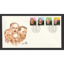 Seria na kopercie FDC przedstawiająca pionierów medycyny w różnych dziedzinach i w różnych zakątkach świata, a są to kolejno: