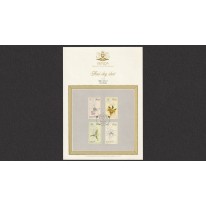Na odwrocie karty widnieje informacja w języku angielskim dotycząca filatelistycznych detali serii znaczków oraz poszczególnych gatunki orchidei.