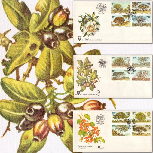 Na znaczkach widnieją gatunki drzew, które występują na terenie Vendy, kolejno: