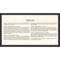 Każda koperta FDC zawiera w środku ulotkę informacyjną (nieco tylko mniejszą, niż koperta) z informacjami w języku angielskim na temat gatunków drzew ze znaczków.