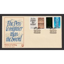 Seria znaczków na kopercie FDC, na których przedstawiono różne rodzaje komunikacji pisemnej, kolejno: