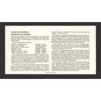 Koperta zawiera ulotkę informacyjną w języku angielskim, w której opisano poszczególne typy najstarszych typów pisma.