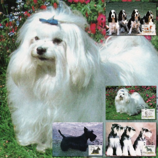 Seria na kartach maksimum, na znaczkach której widnieją następujące rasy psów: cocker spaniel, maltańczyk, terier szkocki i sznaucer.