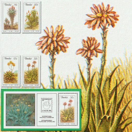 Na znaczkach widnieją następujące gatunki aloesów występujące na terenie byłego bantustanu Transkei: