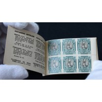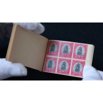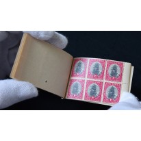 Zeszycik jest zszyty i składa się z 6 arkuszy po 6 znaczków (arkusze posiadają prawy margines). Pomiędzy arkuszami znajdują się puste strony z cienkiego papieru.