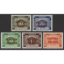 Numeryczne znaczki dopłaty wydane pierwotnie tego samego roku dla Kongo Belgijskiego, tym razem z nadrukami „Ruanda-Urundi”.