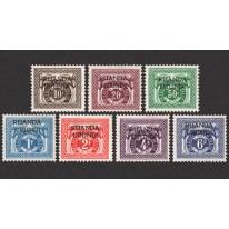 Numeryczne znaczki dopłaty wydane pierwotnie w 1957 roku dla Kongo Belgijskiego, tym razem z nadrukami „Ruanda-Urundi”.