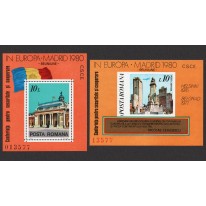 Na znaczkach widnieje budynek zgromadzenia narodowego w Bukareszcie i pomnik Don Kichota w Madrycie.