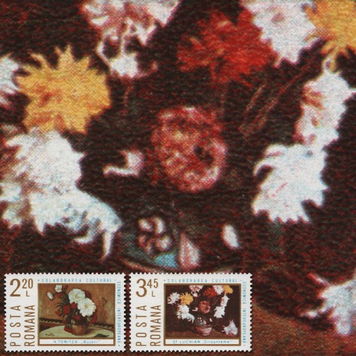 Na znaczkach widnieją dzieła malarstwa przedstawiające kwiaty.