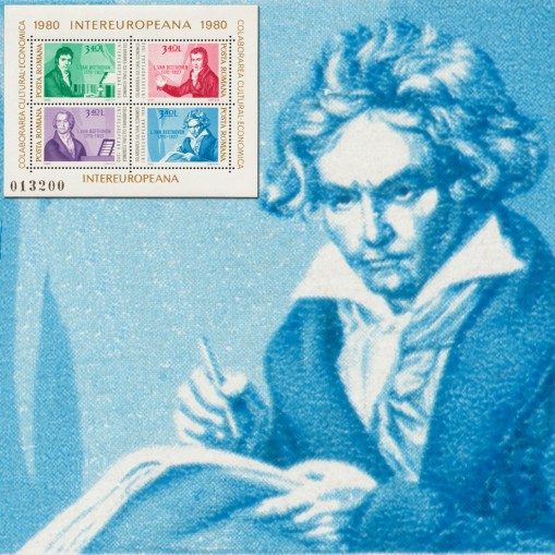 Na znaczkach widnieje kompozytor Ludwig van Beethoven.