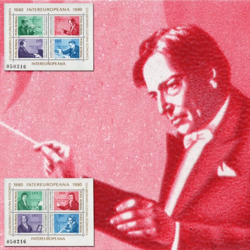Na znaczkach widnieje kompozytor Ludwig van Beethoven oraz rumuński kompozytor, skrzypek, pianista i dyrygent George Enescu.