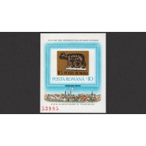 Na znaczku widnieje rzymska rzeźba Romulusa i Remusa z wilczycą.