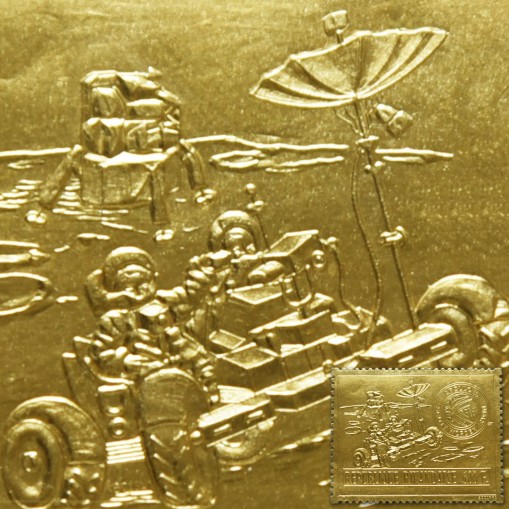 Na znaczku widnieje lądownik oraz pojazd LRV (ang. Lunar Roving Vehicle) używany przez astronautów do przemieszczania się po powierzchni Księżyca.