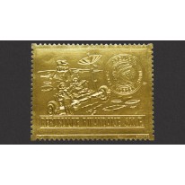 Złoty znaczek upamiętniający misję kosmiczną „Apollo 15” - czwartą, podczas której astronauci wylądowali 30 lipca 1971 roku na powierzchni Księżyca.