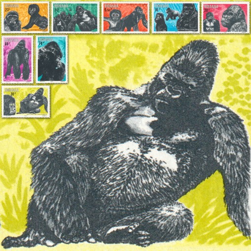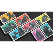 Na znaczkach przedstawiono goryla górskiego (Gorilla beringei beringei).
