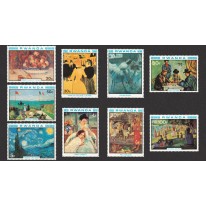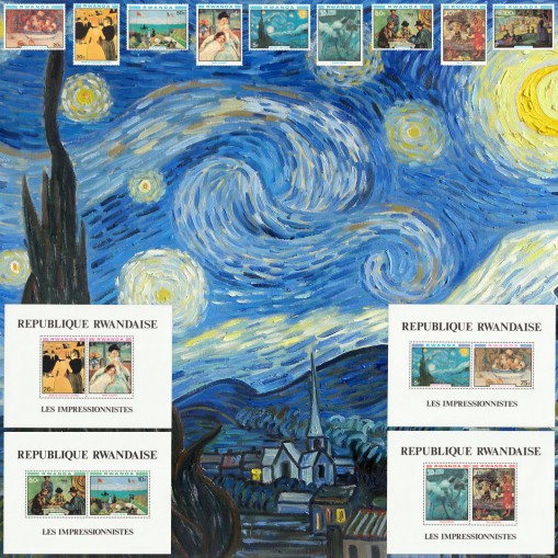 Na znaczkach w blokach znajdują się dodatkowo reprodukcje obrazów Mary Cassatt, Renoira, Moneta i Gaugina.