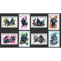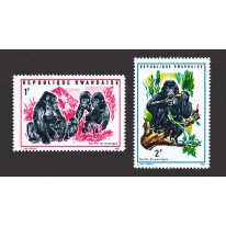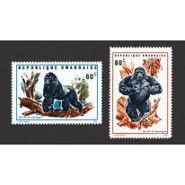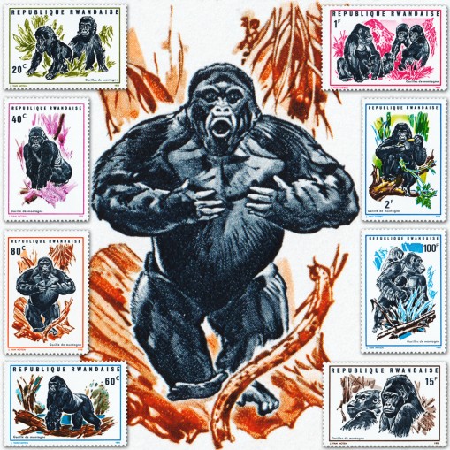 Seria z marginesami arkuszy przedstawiająca goryla górskiego (łac. Gorilla beringei beringei), ssaka z rodziny człowiekowatych. Jest największą małpą człekokształtną – dorosły samiec może ważyć od 150-200 kg. Goryle te żyją w deszczowych lasach środkowej Afryki: w górach Wirunga na styku granic Demokratycznej Republiki Konga, Ugandy i Rwandy na wysokościach 2225-4267 m n.p.m., lub w Nieprzeniknionym Lesie Bwindi w Ugandzie.