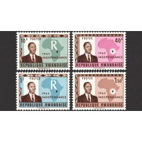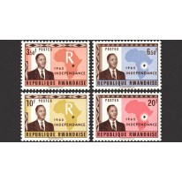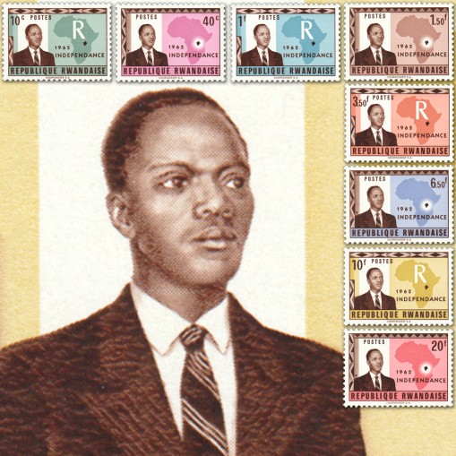 Znaczki upamiętniające ogłoszenie przez Rwandę niepodległości. Na znaczkach widnieje prezydent Kayibanda oraz mapa kontynentu afrykańskiego.