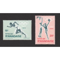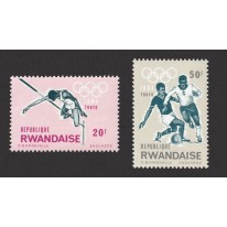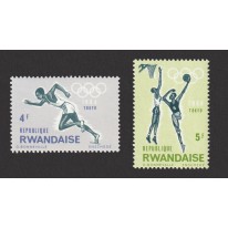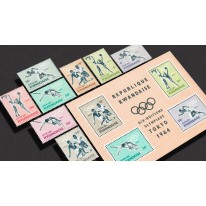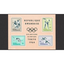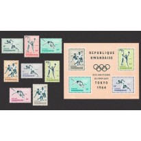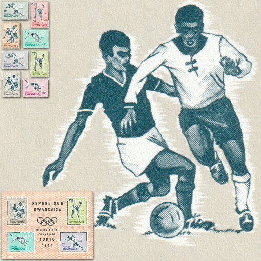 Znaczki upamiętniające Igrzyska Olimpijskie w Tokio. Widnieją na nich kolejno: