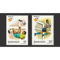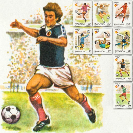 Rwanda nie brała udziału w tym Mundialu (z drużyn afrykańskich zakwalifikowały się tylko Algieria i Kamerun), ale wydano ten oto zestaw, przedstawiający zawodników różnych narodowości w akcjach piłkarskich.