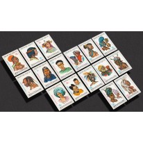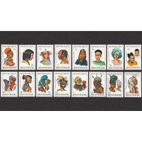 Na znaczkach pierwszej serii widnieją nakrycia głów następujących grup:
